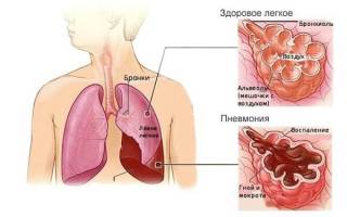 Бронхопневмония — это очаговые изменения легочной ткани на фоне острого воспаления стенок бронхов. Озноб, температура тела достигает 39-40 ° С, человек страдает интоксикацией (головные боли, слабость, недомогание и мышечные боли). В начальной стадии кашель сухой, в дальнейшем сопровождается выделением слизисто-гнойной мокроты. Чаще всего это осложнение инфекционного обструктивного бронхита.