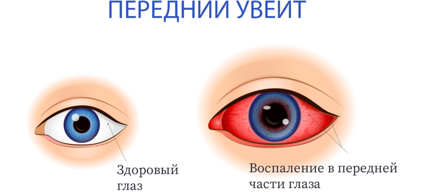Невозможно предпринять никаких действий без определения типа заболевания, так как все типы лечатся по-разному. Исключение составляет передний увеит (ирит, иридоциклит), который может привести к сращению или полному сращению краев радужки и хрусталика. Первая помощь в этом случае — назначить препарат из мидриатической группы:
