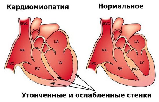 Дилатационная кардиомиопатия (ДКМП) характеризуется выраженным увеличением всех камер сердца, гипертрофией и снижением сократительной способности сердечной мышцы. Симптомы дилатационной кардиомиопатии появляются в молодом возрасте 30-35 лет. Предполагается, что инфекционные и токсические факторы, метаболические, эндокринные и аутоиммунные нарушения играют роль в этиологии DCMP; в 10-20% случаев кардиомиопатия имеет семейное происхождение.