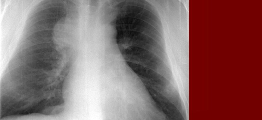 Из инструментальных обследований методом выбора является рентгенография грудной клетки. Изображение выполнено в двух проекциях. При медиастинальной форме рака легкого наблюдается расширение медиальной тени. В некоторых случаях можно увидеть очертания опухоли.
