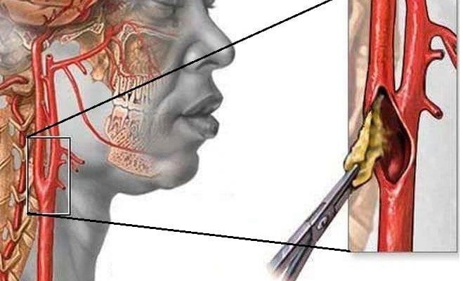 - Эверсия сонной артерии, эндартерэктомия — открытая операция, при которой из сосуда удаляется атеросклеротическая бляшка, после чего восстанавливается ее целостность.