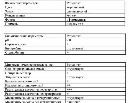 Также анализ показывает вероятное выведение конкрементов: желчных и панкреатических. Сводная таблица выглядит так: