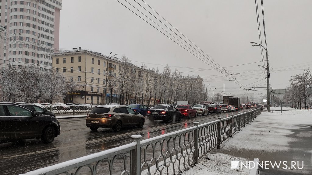Екатеринбург с раннего утра в первый рабочий день после праздников встал в пробки. Ночью в городе пошел снег – осадки, по традиции, всегда негативно сказываются на трафике в уральской столице. Кроме того, снег ложится на фрагменты гололеда, а это, в свою очередь, плохо сказывается на сцеплении с дорогой для тех, кто до сих пор ездит на летней резине. Колеса пробуксовывают, на поворотах такие машины могут уйти в занос, что опасно не только для них, но и для других машин и пешеходов.