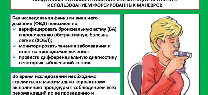 Во время обследования используется специальный прибор — спирограф, который измеряет количество выдыхаемого воздуха. Более современные приборы дополнительно показывают газовый состав выдыхаемого и выдыхаемого воздуха. Эта функция позволяет оценить эффективность газообмена в альвеолах. Экзамен регистрируется в трех основных режимах:
