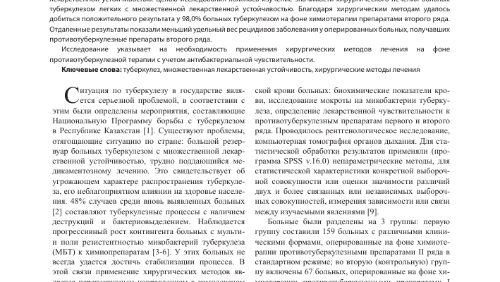 Статья. Хирургическое лечение туберкулеза легких с использованием молекулярной генетики для определения чувствительности микобактерий туберкулеза к рифампицину |