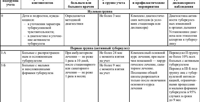 Группа null. В него входят пациенты до 18 лет с положительной туберкулиновой пробой с целью объяснения его причин, проведения диагностических тестов, подтверждающих или опровергающих диагноз, и определения активности туберкулезного процесса.