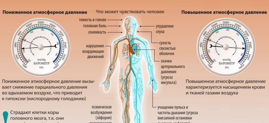 Если сила столба воздуха изменяется, равновесие нарушается, человек реагирует в основном колебаниями артериального давления, ухудшая самочувствие.