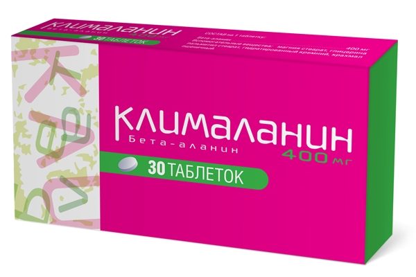 Один из самых эффективных препаратов, используемых для уменьшения или полного устранения симптомов, характерных для климакса. Благодаря содержанию бета-аланина препарат положительно влияет на обменные процессы, которые могут нарушаться в результате гормональных изменений. Клималанин уменьшает приливы, жар и повышенное потоотделение. Противопоказаний нет. Но если гормональный дисбаланс выражен, Клималанин не поможет. Нужно назначать более сильные препараты.