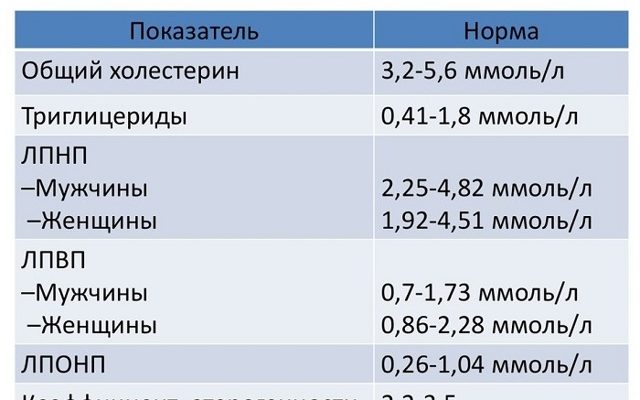 Отношение общего холестерина к ЛПВП не должно превышать 1-3,5.