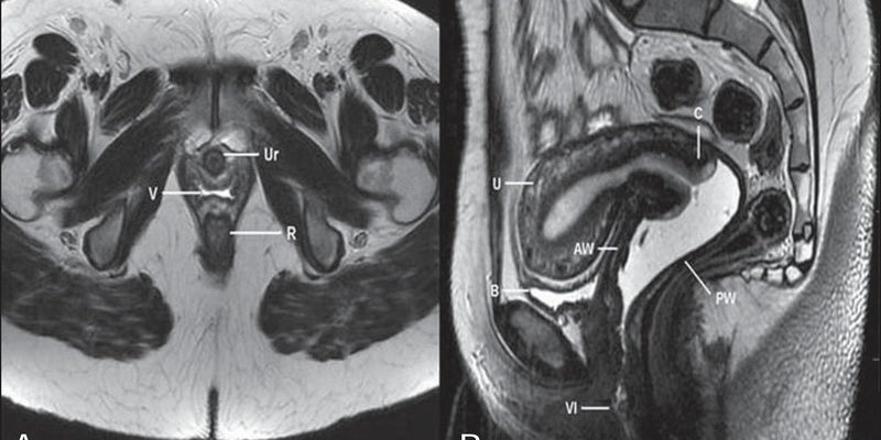 При интерпретации МРТ-изображений яичников и органов малого таза определяется наличие или отсутствие структурных изменений тканей. На изображении специалист визуализирует:
