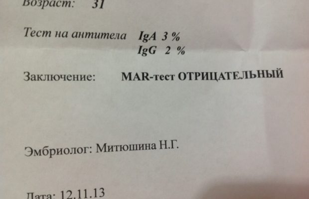 Если мужчина ранее проходил тестирование на иммунное бесплодие, ему могут посоветовать повторно пройти тест MAR, если есть показания. Отрицательный результат в прошлом не означает, что антиспермальные антитела не могут быть произведены сейчас.