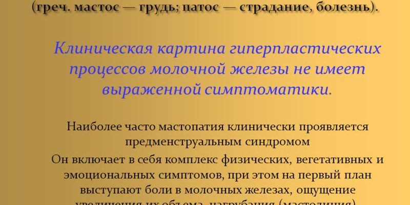 Для характеристики боли или дискомфорта в молочных железах в медицине существует термин мастодиния или масталгия, эти ощущения могут говорить о функциональных изменениях в организме или быть симптомом серьезной патологии. Масталгия доставляет женщине большой дискомфорт не только в сексуальной и семейной сфере, но и вызывает повышенное беспокойство и беспокойство.