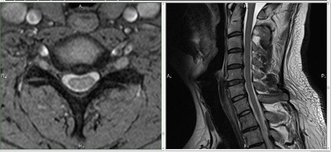 | Дегенеративные заболевания | Тип инструментальной визуализации зависит от стадии заболевания. В начале развития патологии на снимке виден сглаженный шейный лордоз. Второй этап — патологически изменено положение позвонков. Третий этап — диски истончаются на 25% и более, возникают костные шпоры. Когда болезнь находится в запущенной стадии, МРТ показывает более выраженные патологические симптомы. |