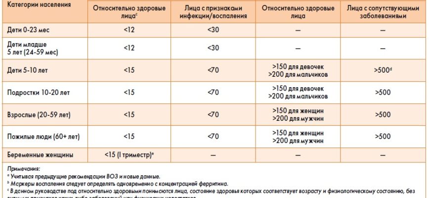 Норма ферритина в крови у женщин (таблица), причины повышения и снижения
