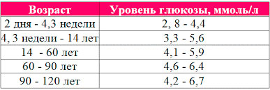| Возраст | Норма концентрации глюкозы, ммоль / л |