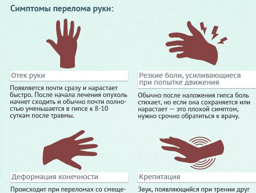 Симптоматика перелома включает симптомы, видимые невооруженным глазом, и те, о которых может сообщить только пострадавший. К ним относятся: