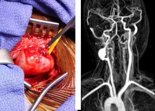 Полное удаление аневризмы и замена пораженного участка пластиковым протезом или фрагментом кровеносного сосуда с другой части тела. Благодаря этому полностью восстанавливается открытие сонной артерии.