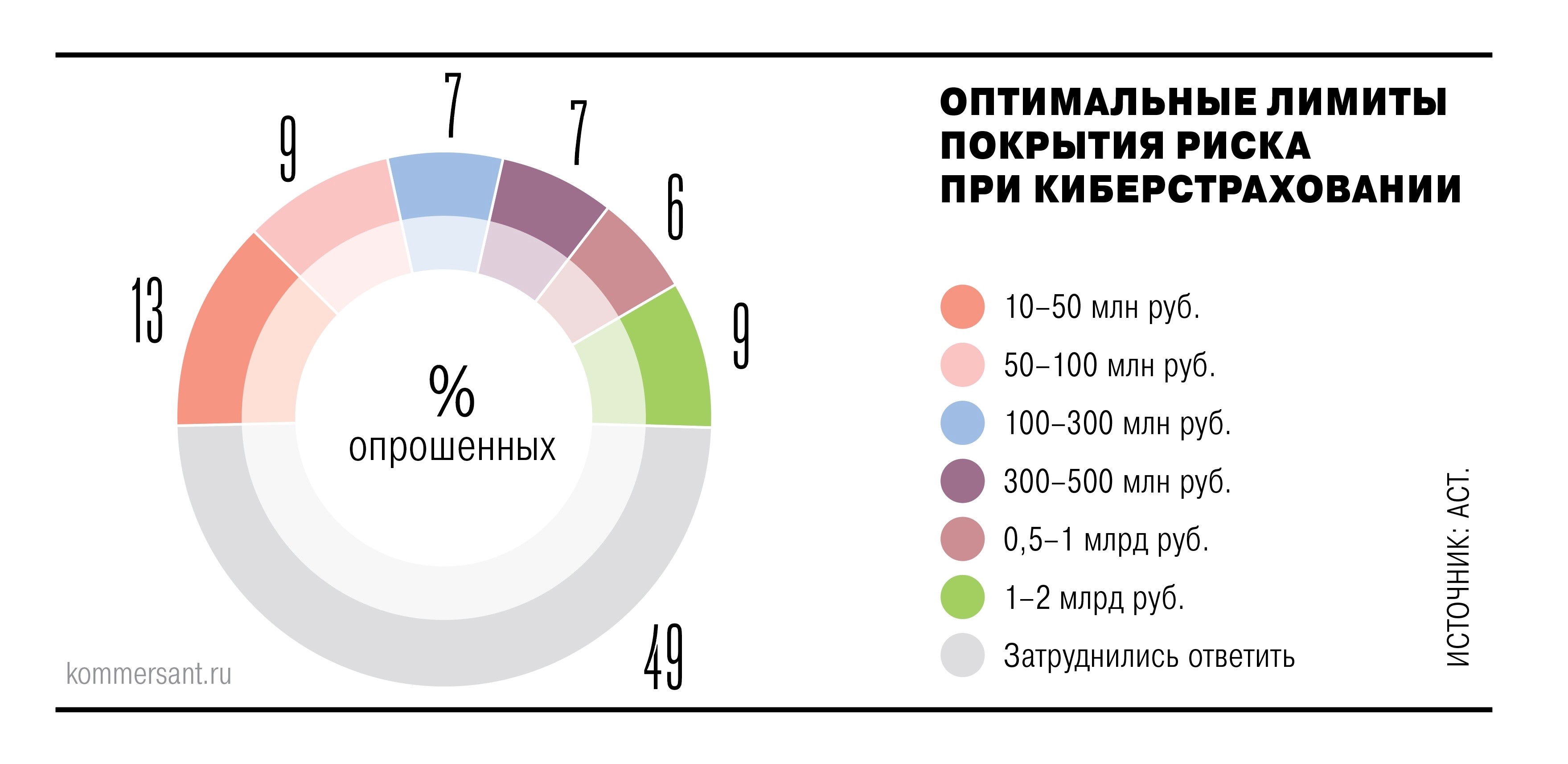 Для основной массы страхователей из сегмента малого и среднего бизнеса существующие на рынке киберстрахования лимиты вполне достаточны, считают эксперты. Однако у крупных компаний (промышленники, банки, операторы связи, ритейлеры, крупные корпорации с разветвленной IТ-инфраструктурой) есть потребность в значительно большем покрытии, говорит совладелец страхового брокера Mains Сергей Худяков. Из материалов АСТ следует, что 15% организаций хотят видеть покрытие рисков на сумму более 500 млн руб.