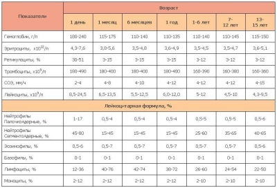 Количество кровяных телец меняется с возрастом, о чем свидетельствует таблица, в которой представлены допустимые значения нормы: