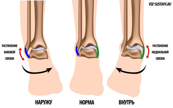 Основная причина растяжения связок голеностопного сустава — вывих стопы наружу или внутрь. Есть несколько основных причин, которые способствуют травме: