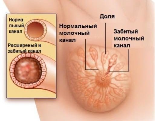 • железистая структура (узкие канальцы, слишком густое молоко);