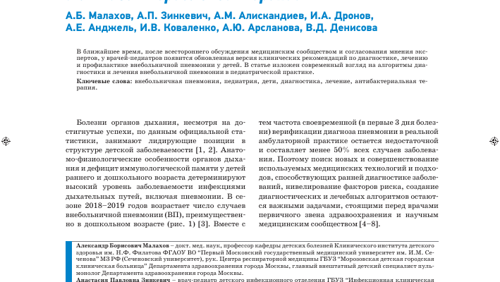 В статье дается обзор клинических рекомендаций по выявлению, диагностике и лечению пневмонии у детей разных возрастных групп. Наконец, мы предоставляем список ссылок на обширные документы из авторитетных медицинских учреждений.