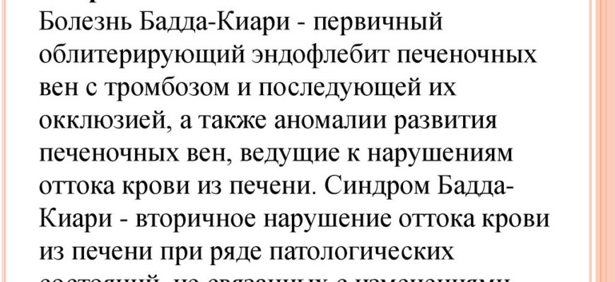 Состояния, при которых подозревается синдром Будды Киари и проводится соответствующее лечение: