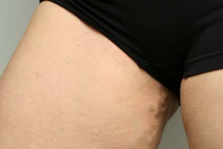 • синеватые узлы и выступающие над поверхностью кожи вены;